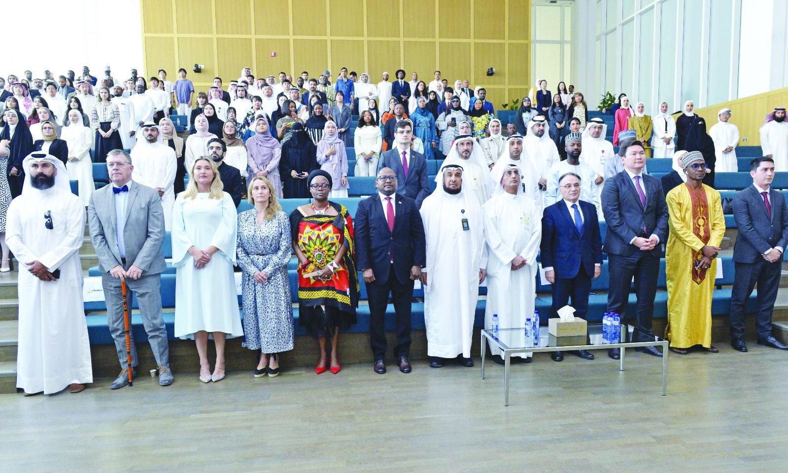 من جهته، أشار رئيس وحدة اللغة العربية للناطقين بغيرها د. خالد الفضلي أن الاحتفال اليوم يعد فرصة متميزة للاطلاع على ثقافة الآخرين، مؤكدًا أن هذه الكوكبة التي سوف تتخرج في الكويت سيكونون سفراء للكويت في بلادهم، منوهًا بحرص جامعة الكويت على أن تكون حاضنة للتطور بمساهمتها في تنشئة جيل واعد من خلال توفير بيئة تعليمة حاضنة لكافة دول العالم، متمنيًا التوفيق والنجاح لجميع الطلبة الخريجين في مسيرتهم العملية.