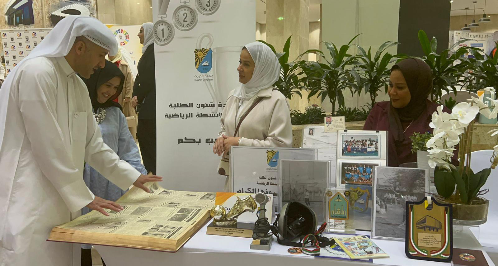 في ختام اليوم الأول من المؤتمر، تم تكريم الرعاة والجهات المشاركة، بالإضافة إلى افتتاح المعرض المقام على هامش المؤتمر بمشاركة بعض الجهات الحكومية والمؤسسات الأكاديمية مثل جامعة الكويت بركن لإدارة الأنشطة الرياضية بعمادة شؤون الطلبة، إذ أكد القائم بأعمال مدير إدارة الأنشطة الرياضية د.طارق دشتي أن مشاركة الإدارة تأتي ضمن إستراتيجيتها في تعزيز الشراكة المجتمعية، بالإضافة إلى إبراز مكانة النشاط البدني في دعم صحة المرأة وتمكينها، وركن لمركز دراسات وأبحاث المرأة بالجامعة، حيث أوضحت رئيس مركز دراسات وأبحاث المرأة د.نورة الشعيبي أن المشاركة تأتي ضمن سعي المركز على التعاون مع كافة مؤسسات الدولة، لتحقيق التصدي لظاهرة العنف ضد المرأة، آملةً أن يثمر هذا التعاون بنتائج إيجابية تنعكس على حال المرأة الكويتية.