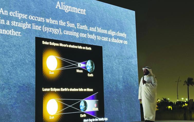بدورها أفادت نائب رئيس نادي الفيزياء بجامعة الكويت الطالبة شيخة البسام أن نادي الفيزياء يعد جزءاً من تنظيم هذه الفعالية العلمية الكبيرة، وذلك تحت إشراف قسم الفيزياء بكلية العلوم وبرعاية مؤسسة الكويت للتقدم العلمي، لافتة إلى أن نادي الفيزياء سعى الى مشاركة مختلف الكليات في جامعة الكويت لرصد هذه الظاهرة الفلكية تحت أجواء يسودها الحماس والاندماج مع الجميع، مشيدة بالحضور الكبير من الجمهور ومشاركة أعضاء الهيئة الأكاديمية والهيئة الإدارية من مختلف الكليات.