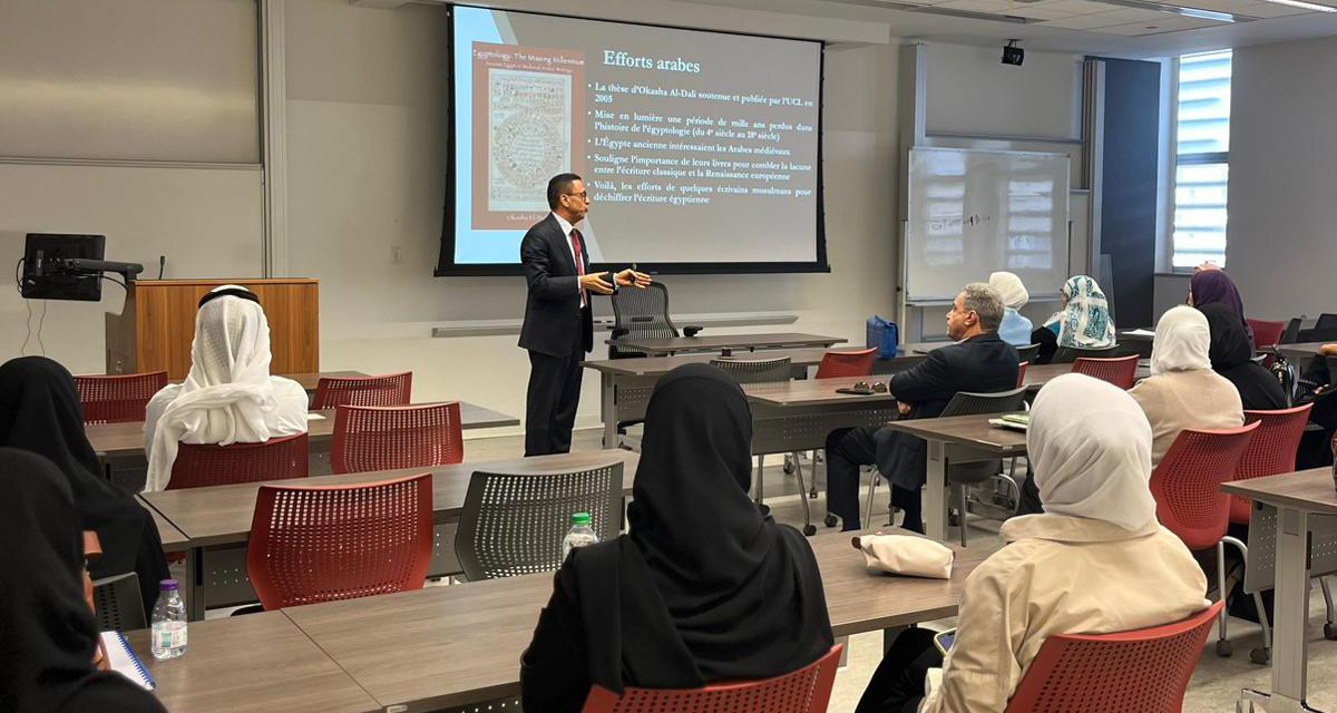 وتأتي هذه المحاضرة ضمن سلسلة من فعاليات الموسم الثقافي للعام الجامعي الحالي بقسم اللغة الفرنسية وثقافاتها في كلية الآداب، تعزيزًا لدور الجامعة في تقديم محاضرات علمية ثقافية لطلبة الجامعة في مختلف التخصصات، تماشيًا مع إستراتيجية جامعة الكويت.
