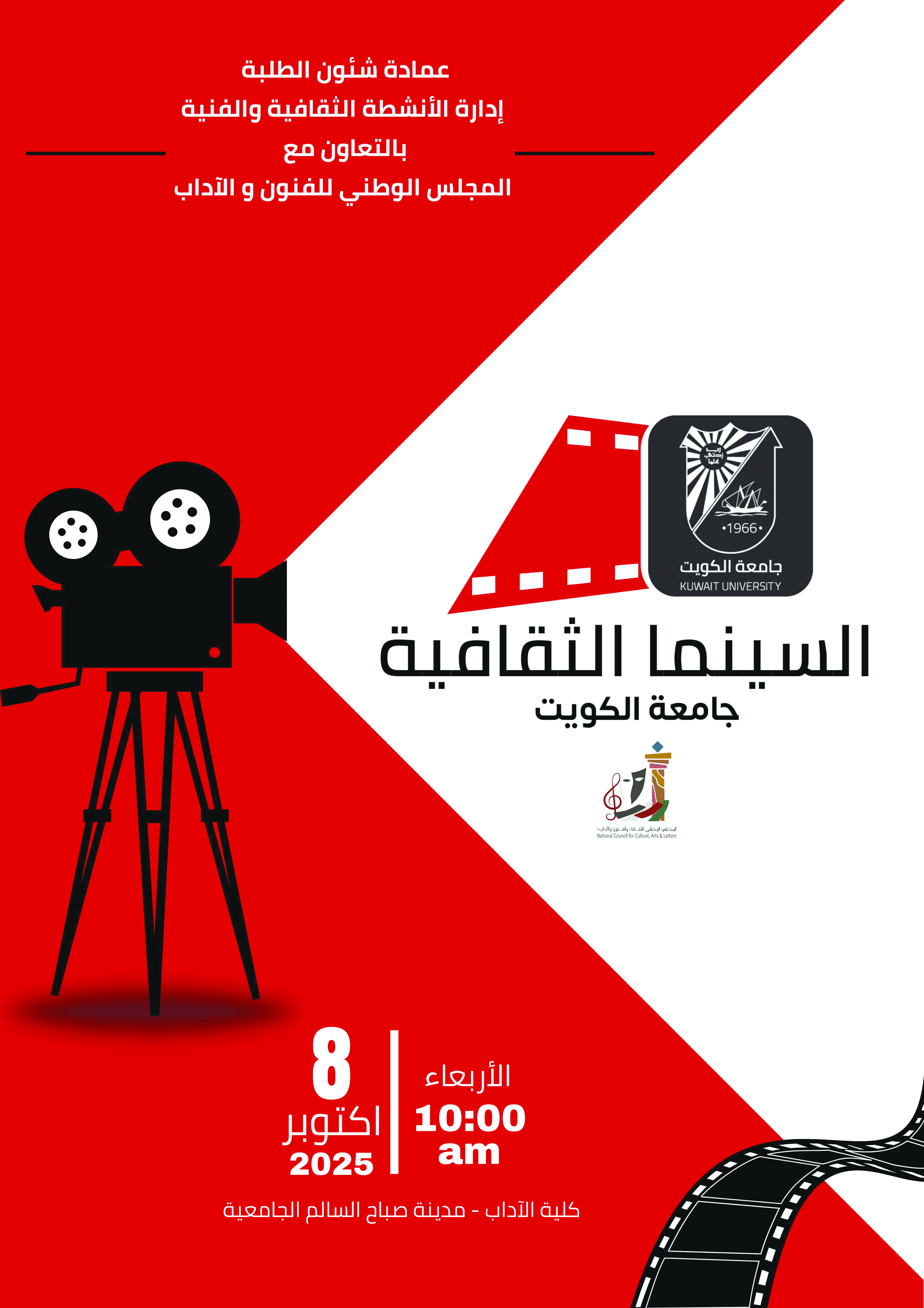 وبهذه المناسبة، صرّح القائم بأعمال العميد المساعد للأنشطة الطلابية بعمادة شئون الطلبة د.سالم الشمري قائلاً: “إن إطلاق مبادرة السينما الثقافية يمثل إضافة نوعية للأنشطة الطلابية في جامعة الكويت، حيث تجمع بين التثقيف والترفيه وتفتح آفاقاً جديدة أمام الطلبة للتعرف على التاريخ والهوية الثقافية من خلال الفن السينمائي. ونعتز بشراكتنا مع المجلس الوطني للثقافة والفنون والآداب في هذه المبادرة، ونأمل أن تشكل منصة دائمة لتعزيز الوعي الفني والثقافي لدى أبنائنا الطلبة”.