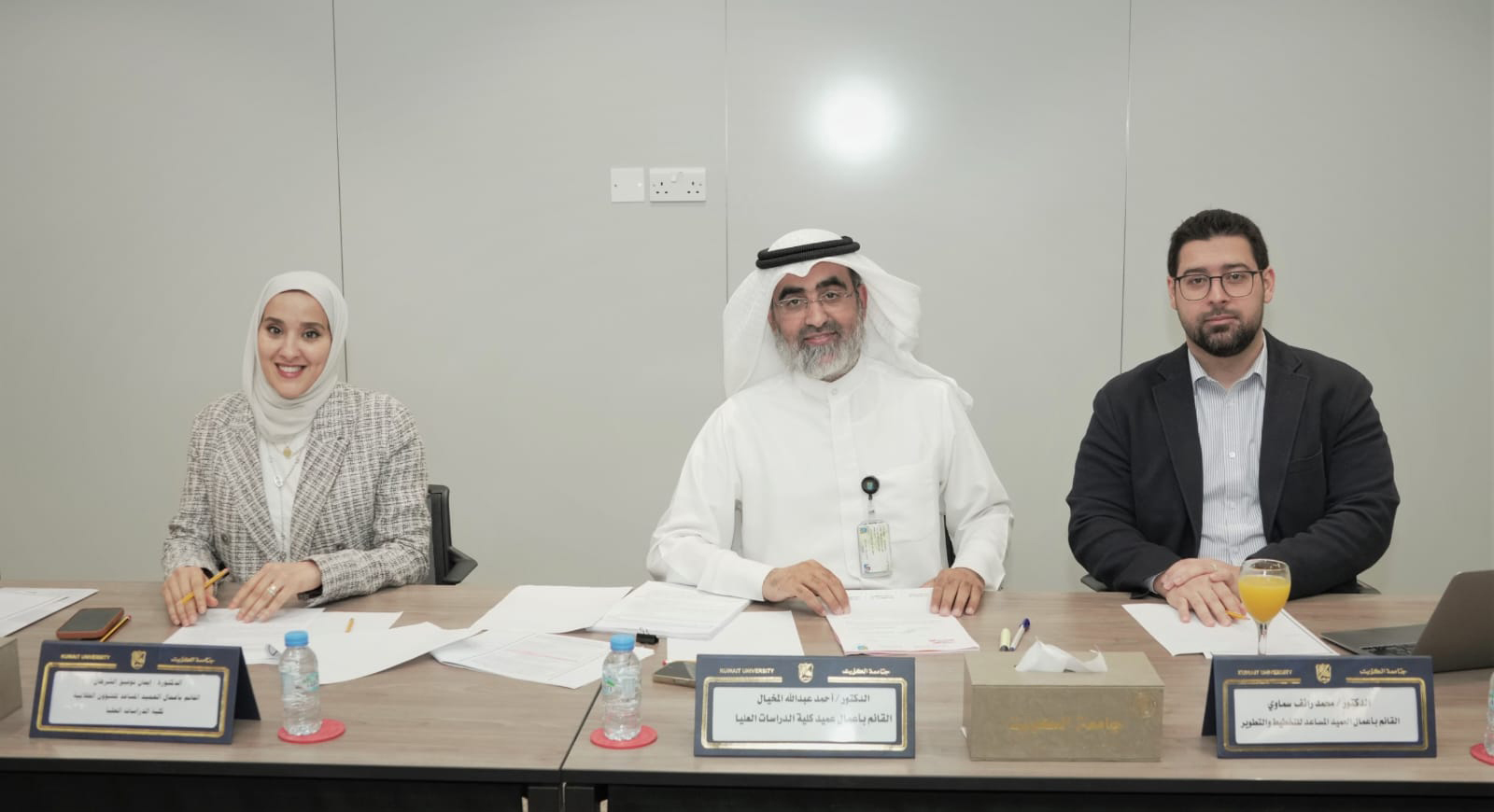 عقدت كلية الدراسات العليا اجتماع المجلس الثاني للعام الأكاديمي 2025-2026، وذلك بحضور كل من عميد كلية الدراسات العليا بالإنابة أ.د.أحمد المخيال، والعميد المساعد، والعميد المساعد للتخطيط والتطوير بالإنابة د.محمد رائف السماوي، والعميد المساعد للشؤون الطلابية بالإنابة د.إيمان توفيق الشرهان، ورؤساء المجال بالكليات الجامعية، في قاعة اجتماعات العميد بالدور الثالث - بمدينة صباح السالم الجامعية.