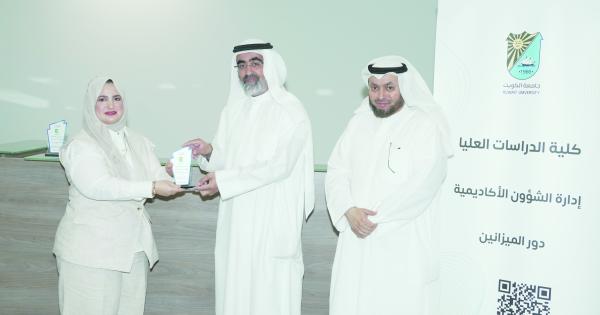 أقامت إدارة الشئون الأكاديمية بكلية الدراسات العليا، ممثلة بالعميد المساعد للشئون الأكاديمية أ.د. مشاري خليفة العيفان حفل تكريم لموظفي الإدارة مع انتهاء العام الجامعي 2024 – 2025..