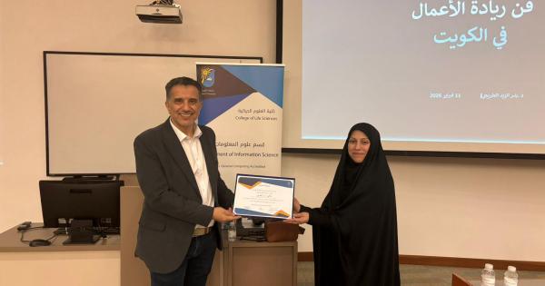 نظّم قسم علوم المعلومات بكلية العلوم الحياتية ندوة بعنوان “فن ريادة الأعمال في الكويت” قدّمها المتخصص في القيادة والتغيير المؤسسي د.بدر الزيد الطريجي، في 11 فبراير الجاري في الكلية..